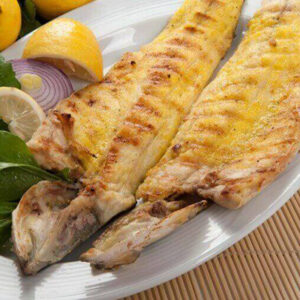 Levrek balığı, soğan, fesleğen, maydanoz, roka, ıspanak, zeytin yağı Sea bass fish, onions, basil, parsley, arugula, spinach, olive oil
